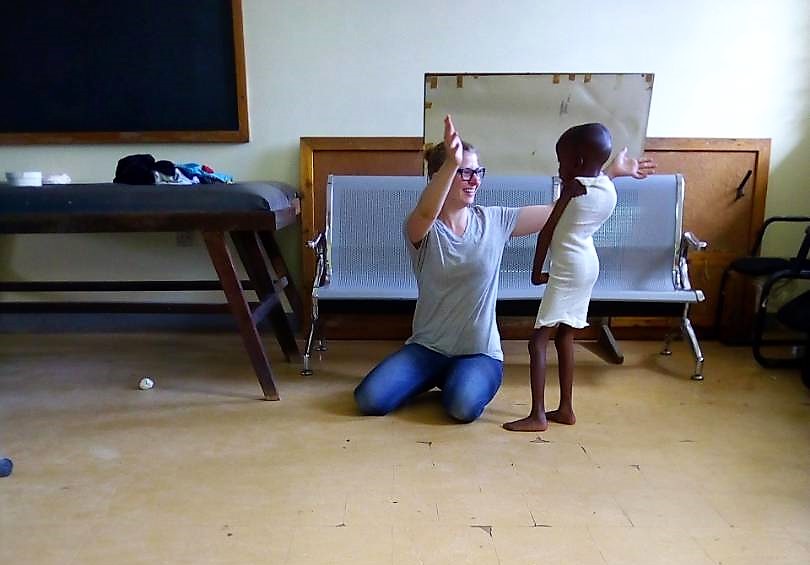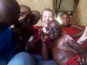 Zunächst mein kleiner verbrannter Patient. Das Mobilisieren der Gelenke und die Gewebsmassagen sind wirklich nicht angenehm, aber er freut sich immer total, mich zu sehen. Außerdem freut er sich auf die Behandlung. Und selbst wenn es unangenehm wird, macht er brav mit. Ich muss gestehen, er wird auch mit Vaseline bestochen und anschließend werden immer Fotos gemacht. Unten habe ich ein Foto von uns: