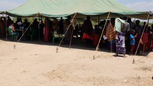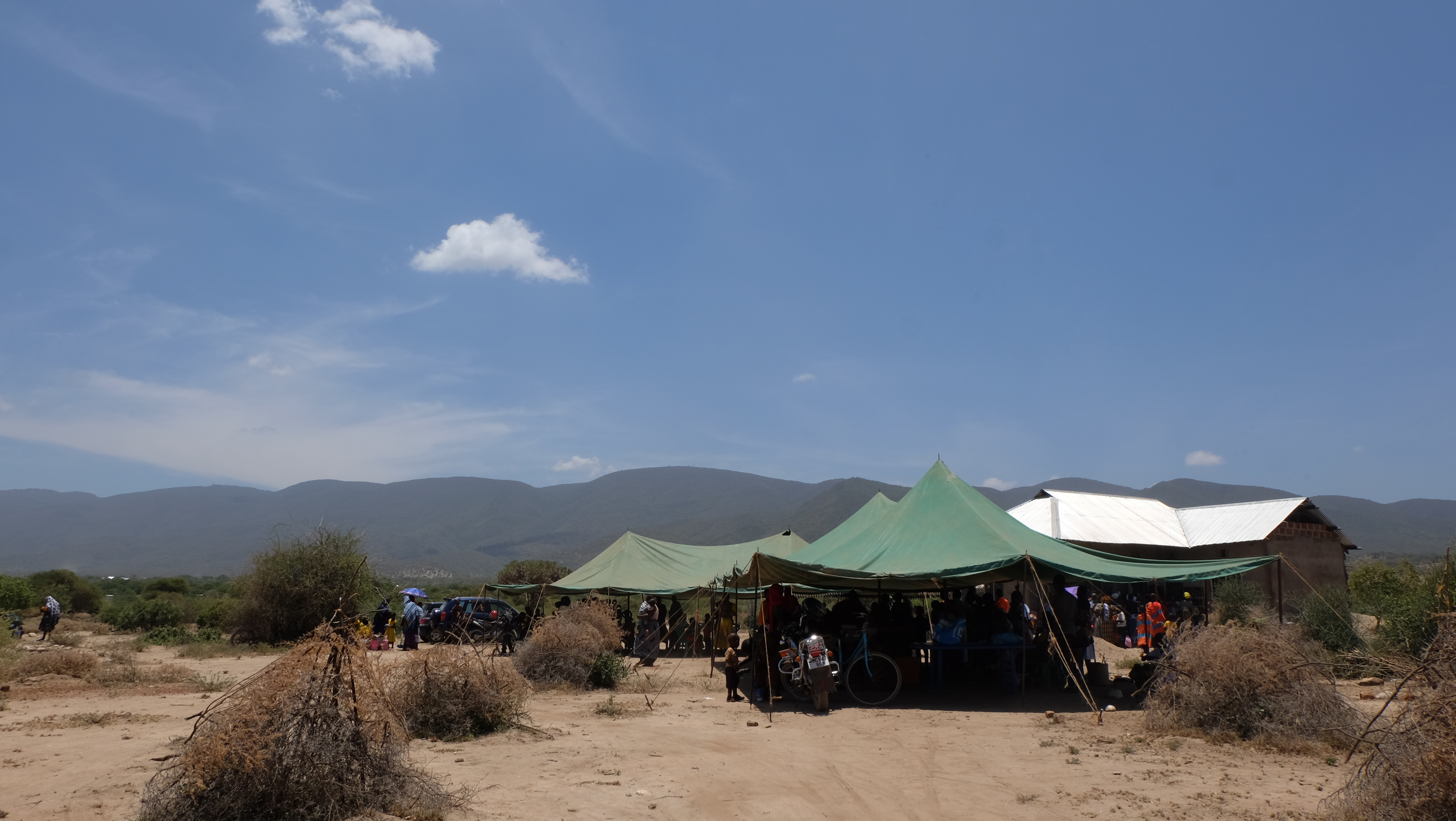 Das medical Camp wurde bereits in mehreren Dörfern durchgeführt, aber diesmal sollte es das erste mal in Londoto stattfinden. Mir wurde vorab erklärt, dass es verschiedene Stationen geben wird in denen die Kinder untersucht werden. Im Rahmen eines anderen Projektes hatte ich festgestellt, dass 11 Kinder aus einem anderen Dorf stark untergewichtig sind und konnte regeln, dass diese auch in diesem Camp untersucht werden. Mir wurde gesagt, dass es am besten sei, wenn diese Kinder am ersten Tag sehr früh kämen, da die anderen Kinder erst später eintrudeln. Wir waren demnach ganz schön überrascht, als am ersten Morgen, bevor das Camp überhaupt aufgebaut war, bereits über 50 Kinder mit ihren Müttern auf uns warteten. Ein Glück, dass die Menschen hier das Prinzip mit der Geduld kennen und von daher auch überhaupt nicht genervt, gereizt oder gestresst waren, als wir dann anfingen das Camp aufzubauen. Der ganz Aufbau wurde auch noch dadurch verzögert, dass die Medikamentenlieferung sich verspätete und gewisse Messgeräte noch nicht eingetroffen waren.